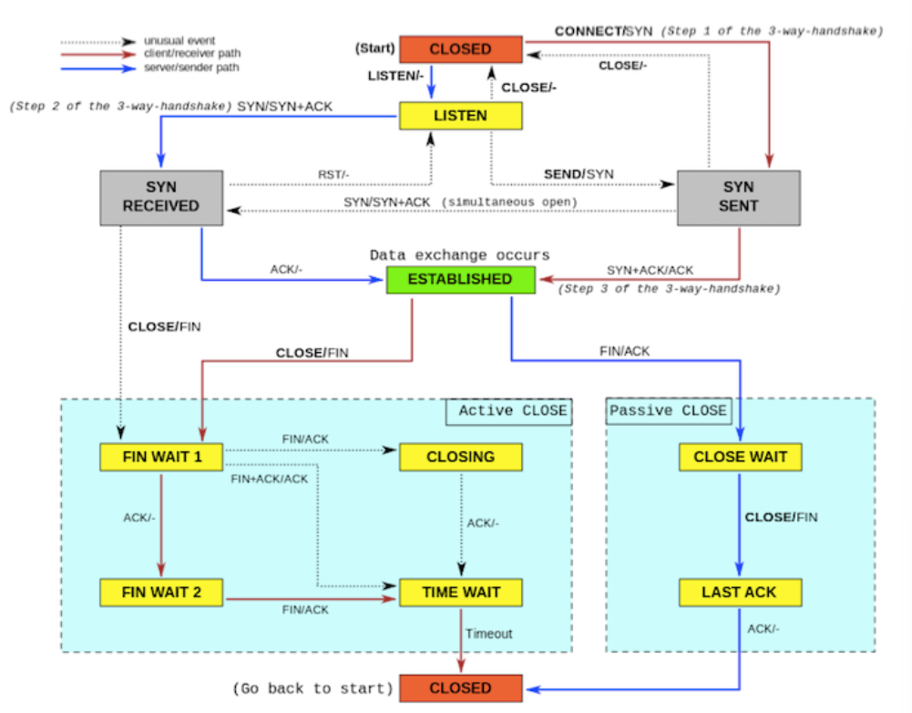 TCP의 연결은 '상태(전이)'의 개념을 동반.